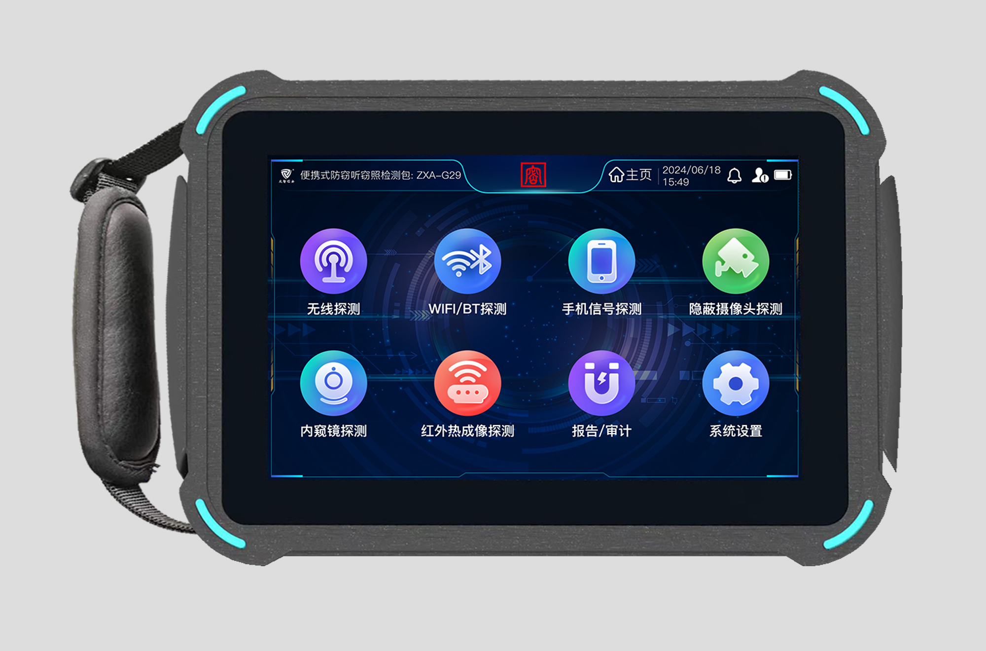 本产品针对窃听窃照对安全保密带来的威胁危害,运用宽带探测、频谱分析、红外热成像、无线信号侦测等技术,查找发现暗藏的电子窃听、窃照装置,及时消除窃密泄密隐患问题,保障重要涉密场所安全。产品支持WIFI、蓝牙、移动通信等无线信号检测,支持摄像头、麦克风等窃听窃照设备检测,主要功能包括但不限于可疑手机信号分析排查、对有线/存储微型摄像头进行检测、对 WIFI/BT信号进行检测分析、具备红外热成像和可视内窥镜检测功能,对发现可疑装置自动告警,AI智能分析,自动整理,按类给出分析报告。